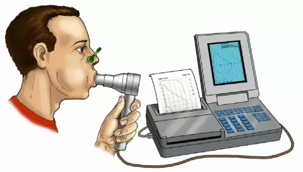 Спирометрию проводят на специальном аппарате с функциональной частью, включающей мундштук, воздухопроводящую часть и датчики воздушного потока. Аппарат также включает программное обеспечение, которое выполняет анализ собранных данных.