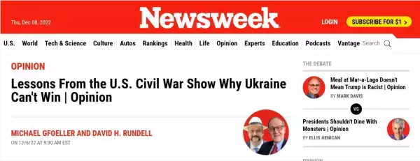 Статья названа «Уроки гражданской войны в США, которые показывают, почему Украине не победить» (Lessons From the U.S. Civil War Show Why Ukraine Can’t Win) и предусмотрительно размещается в разделе «Мнение», ведь господствующий тон публикаций о спецоперации в американских СМИ пока ещё иной.