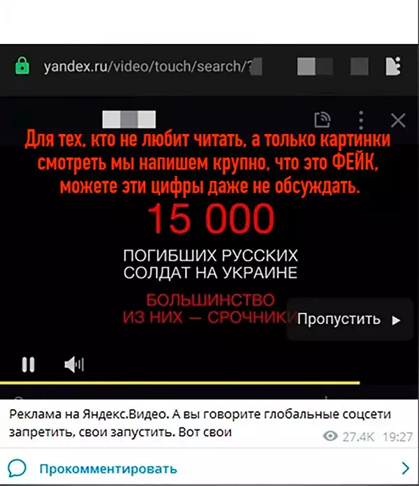 Также «Яндекс» был замечен за показом контекстной рекламы, за которую как бы уже вполне можно ответить по статье Уголовного Кодекса. Рекламной агитацией о количестве погибших российских военных на Украине.