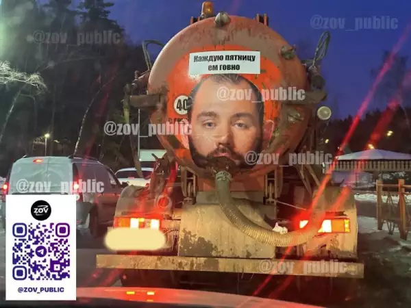 Но вот этот ответ стал просто эталонным! Российские патриоты из телеграм-канала ZOV опубликовали фото и видео так называемых «говновозок» - специальных машин, которые выкачивают нечистоты и вывозят их из жилого сектора. И фото артиста украсило этот боевой отряд ассенизаторов. Теперь Семён Слепаков сполна наберет в свой рот московских фекалий и воплотится в жизнь одна из его гаденьких песенок!