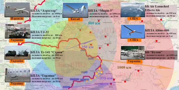 В настоящее время ВСУ располагают более чем 4 тыс. беспилотников различного типа и более чем 500 барражирующими боеприпасами (ББ). Отметим, что это без учёта коммерческих квадро- и мультикоптеров.