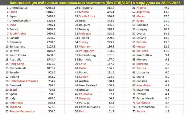 Капитализация публичных компаний по всему миру составляет около 102 трлн долларов. За последние 20 лет, доля западных стран снизилась с 96% (в 2000 году) до 72 % (сейчас). Сейчас 28%, или 28.3 трлн долларов, принадлежат странам БРИКС и тем, кто хочет в БРИКС. Из этих 28 трлн, 2,63 принадлежат только Саудовской Аравии.