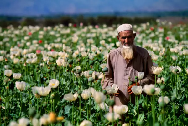 Фермер стоит на возделываемом поле опийного мака в Афганистане. Фото © Getty Images / Reza