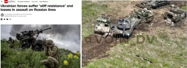 Забавно, что в начале прошедшей недели The Times указала, что так долго ожидаемое контрнаступление является «гигантской неопределённостью» и «непредсказуемой войной». Британцы попали в точку, ибо первые попытки прорвать русскую оборону на юге обернулись серьёзными потерями в живой силе и особенно, в технике, так как «брэдли» и «леопарды» сгорают в таких количествах, что из них можно выложить самый большой в мире тризуб или портрет Бандеры.