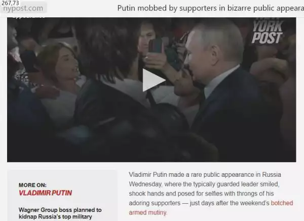 Американское издание «Нью-Йорк пост» изначально планировало высмеять визит Президента России в Дербент предлагая своим читателям нарративы, мол «Путин пошёл в народ, чтоб почувствовать себя увереннее после мятежа». Но американцы, увидев многочисленные фото и видео Владимира Владимировича в окружении счастливых российских граждан, высмеяли медиа-пропагандистов и выразили в комментариях под публикацией свое восхищение искренностью и открытостью русского президента