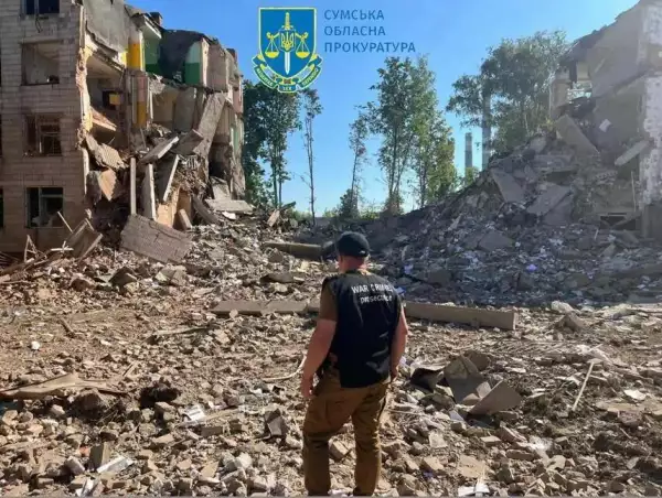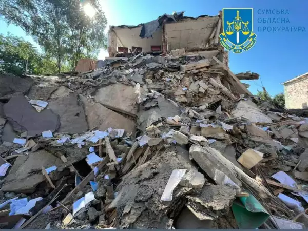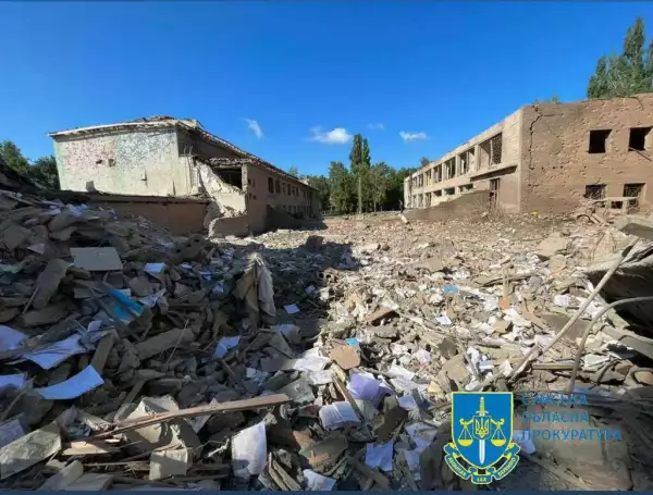 Украинские силовики опубликовали снимки из города Сумы, где накануне российским ракетным ударом было разрушено здание одного из учебных заведений.