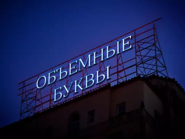Установка с объемными буквами используется в случае необходимости отображения логотипа компании. Возможно применение неоновых элементов в виде газосветных трубок разного цвета. Такие конструкции могут сочетать динамические и статические детали, фигуры.