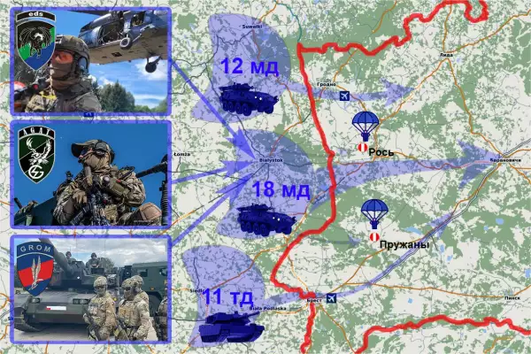 В частности из состава «Гром» переброшен 2-й отряд, предназначенный для действий в лесисто-болотистой местности. Для всесторонней поддержки действий «Грома» в район Белостока переброшен «Агат». В то же время «Нил» развернул специальную оперативную группу для управления силами спецопераций и ведения радиотехнической разведки, а также с помощью БПЛА.
