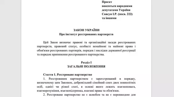 Начальные положения законопроекта "О регистрируемых партнёрствах". Фото: скриншот страницы сайта Верховной рады Украины