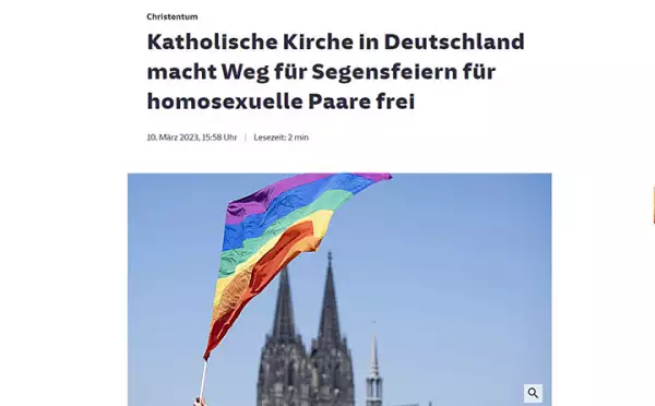 Украинские сайты при этом в каждом сообщении о "дискриминации" однополых партнёров не забывают указать, что Украине есть на кого равняться – в Германии, говорят они, католическая церковь с марта 2026 года начнёт проводить обряды благословления однополых браков, о чём уже активно пишет немецкая пресса.