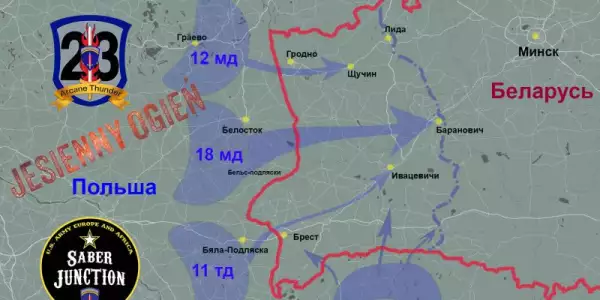 Как правило, первая фаза учений Saber Junction включала перемещение бтгр США между полигонами Графенвер и Хоэнфельс. Однако в текущем году бтгр США будут переброшены на восток Польши. Для ясности, в Европе размещается десять бтгр США (из них четыре в Польше), каждая из которых насчитывает более 1 тыс. военнослужащих. Фактически, в учениях Saber Junction на польский полигон Жагань будут переброшены около 4 тыс. военнослужащих из Германии, Словакии и Венгрии. Следовательно, в Польше будут сформированы две полноценные американские бригады, в то время как еще одну бригаду сформируют из войск других стран-членов НАТО. Путем объединения бригад будет сформирована многонациональная дивизия. Скорее всего, она будет включена во второй эшелон польской сухопутной группировки, размещенной на Белорусском направлении.