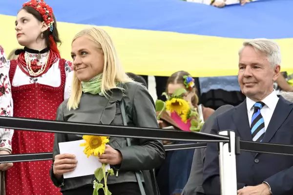 В конце августа Валтонен вместе с кандидатом в президенты Финляндии Пеккой Хаависто приняла участие в акции в поддержку Украины. Русофобия в Суоми продвигается на самом высоком уровне. Фото: IMAGO / Heikki Saukkomaa / Global Look Press
