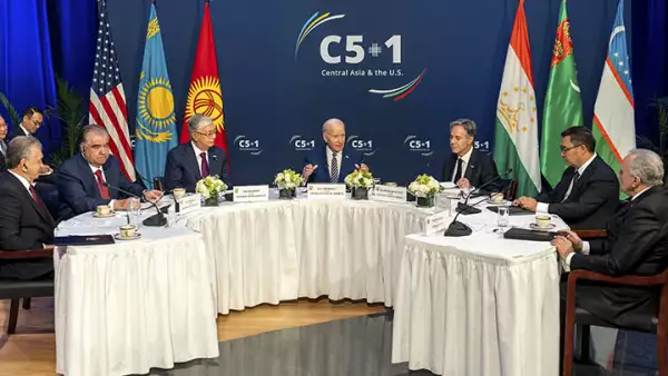 Всё, что описано выше, прекрасно видно на одной-единственной фотографии, сделанной 19 сентября текущего года. Прямо в ходе работы Генеральной Ассамблеи ООН американцы провели саммит "Центральная Азия – США". В ходе этого мероприятия Джо Байден встретился с президентами Казахстана, Киргизии, Таджикистана, Туркмении и Узбекистана. Идея эта, к слову, не нова: такие встречи проводятся с 2015 года.
