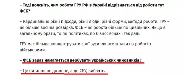 Возможно, этим и объясняются озвученные Будановым сведения в интервью: его структура напрямую управляется спецслужбами США, и ему надо объясняться перед шефами – как в провалах, так и в отсутствии нормальных результатов. Плюс, обратите внимание, в ответах начальника ГУР есть интересный, очень короткий эпизодик: когда его спрашивают про вербовку чиновников, он перепасовывает вопрос к СБУ, – указывает наш источник.