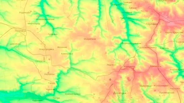 Рельеф диктует необходимость овладения Очеретино. Источник: ru-ru.topographic-map.com