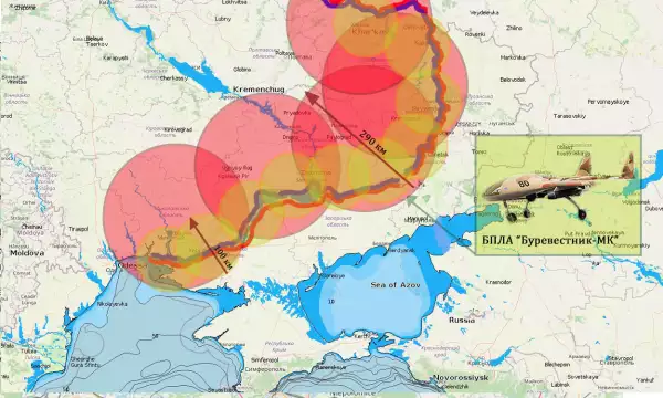 По утверждению разработчика, находящийся в автономном режиме полета по специально составленной программе разведывательно-ударный БАК «Буревестник-МК» за десять часов полета способен преодолевать более 1000 км, однако это не предел. В ближайшей перспективе ожидается увеличение этого параметра как минимум в полтора раза.
