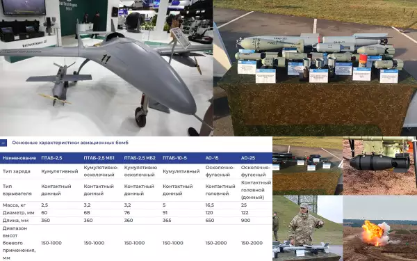 Госкомвоенпром Беларуси заявляет, что способен обеспечить ударные БПЛА неуправляемыми авиационными средствами поражения различного калибра и назначения, а также боевым снаряжением (боевыми частями) для барражирующих боеприпасов.