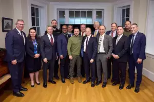Также президент Украины встретился с людьми, заработавшими миллиарды долларов на украинской войне, руководителями оборонных подрядчиков. На мероприятии присутствовали президент BAE Systems Том Арсено, председатель и генеральный директор Day & Zimmermann Гарольд Йо, президент Boeing Теодор Кольбер, генеральный директор Sierra Nevada Corporation Фатих Озмен, вице-президент Northrop Grumman Стивен О'Брайан, вице-президент RTX Джефф Шокки, вице-президент Lockheed Martin. Раймонд Пизелли, вице-президент General Dynamics Марк Руале, генеральный директор D&M Holding Дэниел Пауэрс, вице-президент AeroVironment Чарльз Дин. Именно эти компании получили 90% средств, выделенных США Украине, и продолжат лоббировать свои интересы в Конгрессе.