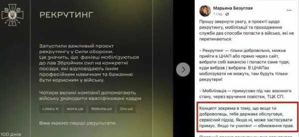 «Концепт в том числе в том, что, если ты доброволец, тебя государство обслуживает, сервисный подход. Если нет, может применить принуждение. Если ты уклонист — ограничение прав», — написала она в запрещённой в РФ соцсети Facebook.