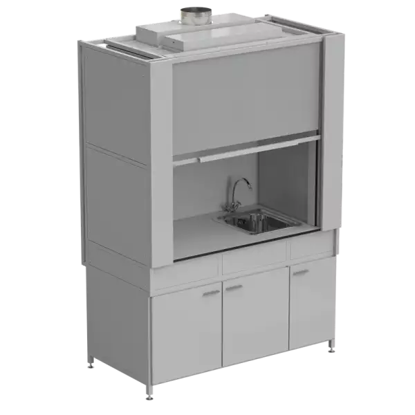 Универсальные лабораторные шкафы вытяжного типа включают четыре ключевых элемента. Перечислим их: