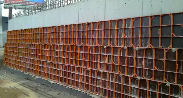 Опалубка состоит из линейных, угловых и универсальных щитов и крепежных элементов. Есть разные подкосы, а также другие комплектующие. Главное отличие, что вес мелкощитовой опалубки невелик, в отличие от крупнощитовой. Она используется для быстрого возведения монолитного фундамента здания, стен, внутренних перекрытий и лифтовых шахт.