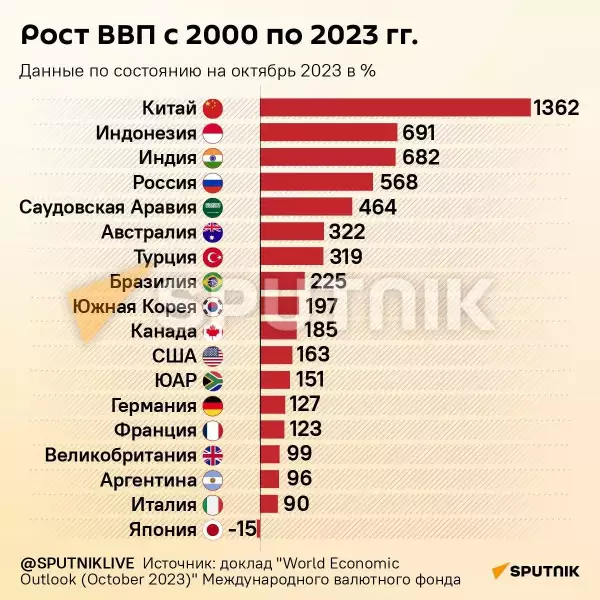 Современным США и ЕС нечего предложить ¾ человечества, то есть всему не-Западу. Экономическое преуспеяние и финансовые вливания? А откуда деньги взять? Последние двадцать с половиной лет мировой экономической центр плавно смещался в Азиатско-Тихоокеанский регион и, похоже, переместился туда полностью. Достаточно взглянуть даже на данные последнего доклада Международного валютного фонда World Economic Outlook. За 2000-2023 гг. рост внутреннего валового продукта Китая составил 1362%, США – 163%. России – 568%, Германии – 127%, Японии – сократился на 15%. Из десяти самых быстрорастущих экономик планеты не-Запад представлен семью (три других – Южная Корея, Канада, Австралия).