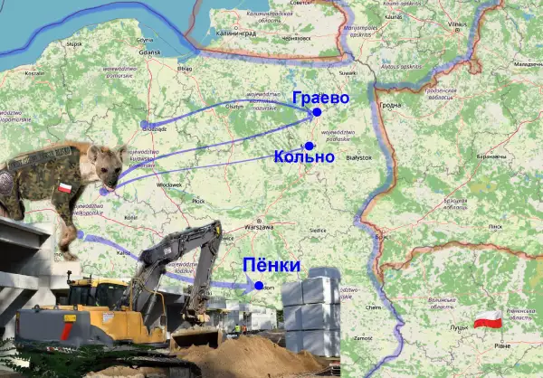 Чуть более года назад для обеспечения польской ударной группировки, развернутой на белорусском направлении, с мая 2023 г. была отмечена массовая переброска содержимого складов с боеприпасами с запада на восток Польши – поближе к границе. Кроме того, вблизи н.п.Пёнки в июле прошлого года завершено строительство складов крупнейшего в Польше завода боеприпасов «Меско», которые, как утверждают источники, предназначены для использования в интересах оперативности действий и повышения мобильности подразделений 18-й мд Войска Польского – основной части упомянутой приграничной группировки. Помимо этого, в мае 2023 года сообщалось о строительстве ещё двух складов для боеприпасов вблизи городов Граево и Кольно, удалённых от белорусской границы на 70-110 км.