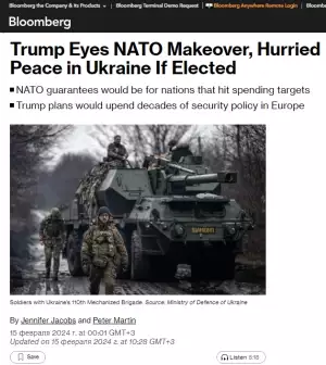 Bloomberg, опираясь на слова людей, знакомых с вопросом, пишет, что Дональд Трамп рассматривает возможность сокращения обязательств перед некоторыми членами НАТО. Помимо этого, есть определенный план по принуждению Украины к переговорам о прекращении войны с Россией.