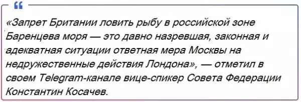 Как теперь британское правительство будет объяснять соотечественникам, куда с прилавков делась треска, и почему она так взлетела в цене, честно говоря, не совсем понятно. И надежды на то, что британские рыбаки тихой сапой под покровом ночи смогут браконьерничать, нет никакой - в Москве прямо заявили, что Россия намерена использовать военные корабли для пресечения любых попыток британских траулеров, зайти в российские воды.