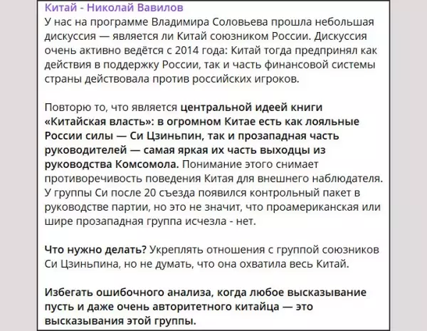 Наш лучший китаист Николай Вавилов вообще считает, что если с Китаем возникнет проблема с платежами, то виноваты в ней будут, прежде всего, наши банкиры – их инертность на китайском рынке, за единичными исключениями. Крупнейшие отечественные банки, по его словам, вообще могли бы вскладчину купить какой-нибудь китайский банк, например, в Харбине для проводки платежей, чтобы никак не зависеть от американских и европейских санкций.