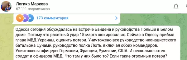 Авторы телеграм-канала Condottiero сообщает, что всю ночь авиация НАТО вывозила тяжёлых "трёхсотых", попавших 15 марта под наши ракеты в одесском доме отдыха "Мрiя". На утро ещё вытаскивали тела из-под завалов.