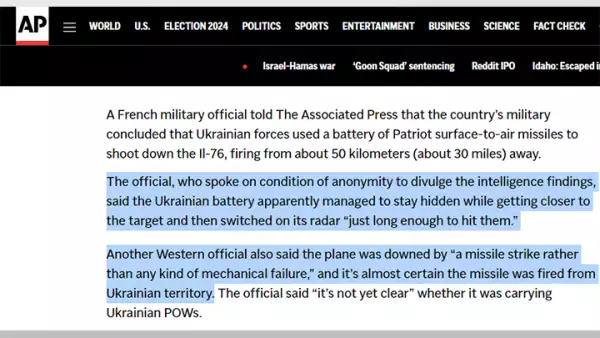 Французский военный чиновник сообщил Associated Press, что военные страны пришли к выводу, что украинские силы использовали батарею зенитно-ракетных комплексов "Пэтриот", чтобы сбить Ил-76, стреляя с расстояния примерно 50 километров (около 30 миль), – быстренько передали они