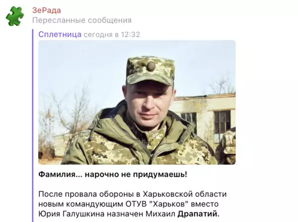 Отметим, что некоторые действия в Киеве в рамках обороны Харькова все же произвели. Вопреки правилу не менять коней на переправе главу войск ВСУ "Харьков" Юрия Галушкина сняли с должности. Вместо него поставили замглавы Генштаба, принимавшего участие в боях под Херсоном в 2022 году, Михаила Драпатого.