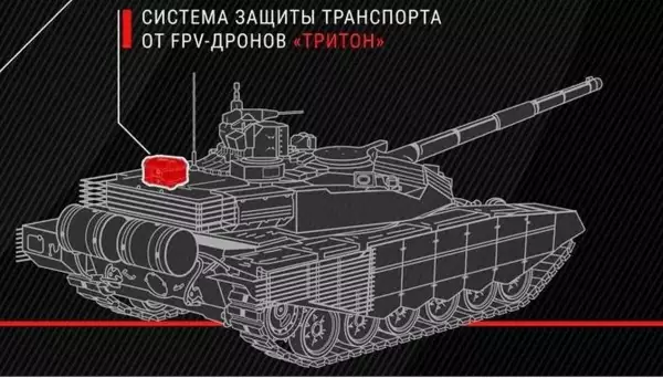 Он также сообщил, что противодроновая система "Тритон", это очень компактное, удобное и унифицированное решение для защиты любой бронетехники.
