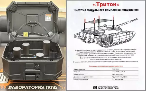 Тогда сообщалось, что система радиоэлектронного подавления "Тритон" формирует защитное поле диаметром минимум в 300 м. А также, что конфигурацию данного комплекса РЭБ можно оперативно изменять, добавляя модули для подавления новых частот, которые противник начинает использовать для управления FPV-дронами.