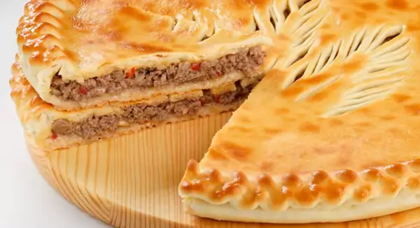 - с мясом – классический пирог с перекрученной говядиной, перцем, чесноком и луком.