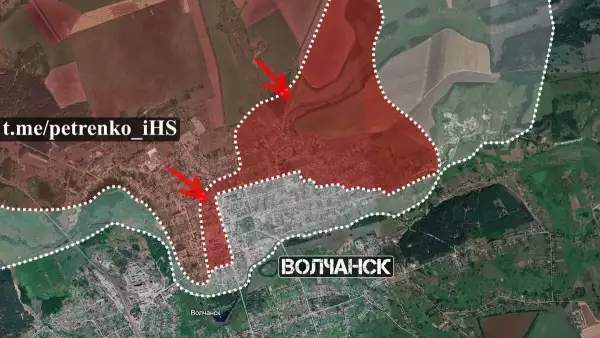 «В северной части Волчанска российские войска продвинулись вдоль улиц Соборная, Короленко, Степная и в районе меловых гор. Под контроль противника перешел участок шириной до 3.2 км на глубину до 2.03 км. Продолжаются активные боевые действия. На западном фланге Волчанского направления противник имеет частичный успех в селе Старица вдоль улицы Масловка, занял территорию урочища Шевченково и оставшуюся часть урочища Кульма. Продвижение вражеских сил на участке шириной до 6.34 км на глубину до 2.3 км»,