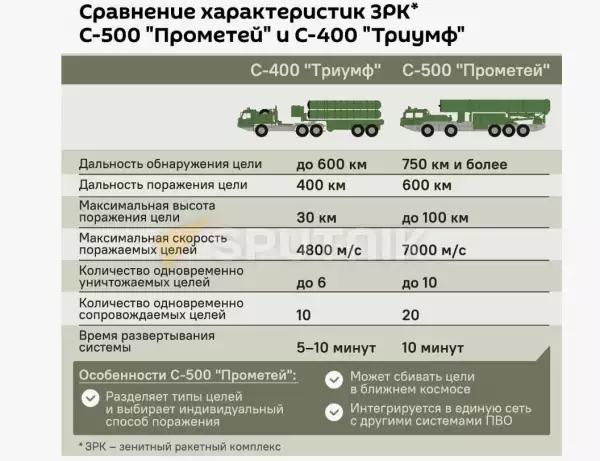 "Прометей", в представлении разработчиков, был действительно больше, чем комплекс и мог творить технические чудеса. К примеру, одновременно вести и обстреливать до десяти баллистических целей, летящих со скоростью свыше 4 Мах. Или сбивать гиперзвуковые ракеты. Причем, натурно испытать эту возможность тоже могла только Россия, имевшая на боевом дежурстве гиперзвуковой комплекс "Кинжал". Летом 2021 года ЗРС С-500 удачно прошла такой тест в ходе испытаний на полигоне "Капустин яр". Тогда же, в ноябре, система прошла проверку в качестве противоспутникового оружия. Ракета мобильной пусковой установки сбила старый космический аппарат "Целина-Д", вызвав очередную истерическую атаку американских политиков и военных на предмет загрязнения орбиты космическим мусором.