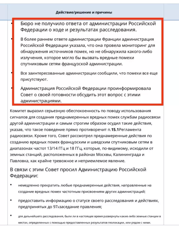 Несколько недель назад, в ООН обратилась Франция, Швеция и Нидерланды, с требованием провести немедленную проверку в отношении России. Эти государства пожаловались в Радио регламентарный комитет Международного союза электросвязи (структура ООН), что из Калининграда Россия систематически глушит спутники стран Евросоюза.