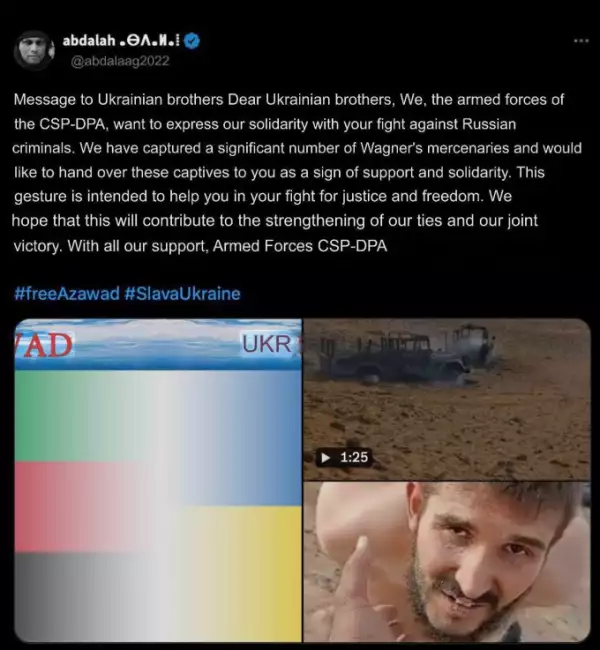 Малийские боевики в соцсетях заявили, что готовы передать пленных бойцов «Вагнера» Украине в «знак поддержки и солидарности».