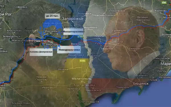 Есть два потенциально опасных направления. Первое – западнее Энергодара: Никополь – Каменка-Днепровская. Второе – восточнее: Высшетарасовка – Новоднепровка.