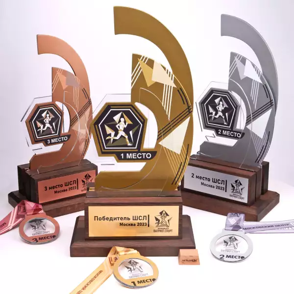 Например, традиционные металлические медали могут быть дополнены современными вставками из акрила или стекла, что придает им новый, свежий вид. Кубки могут сочетать металлические и деревянные элементы, создавая уникальные и привлекательные композиции. Такие награды сохраняют связь с классическими традициями, но при этом выглядят современно и стильно, удовлетворяя требования самых требовательных клиентов.