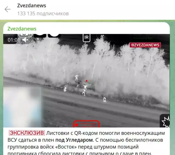 Русские бойцы перед штурмом сбросили на позиции противника под Угледаром листовки с QR-кодом и призывом сдаться. Трое украинских боевиков вняли призыву. Один из них отметил, что "советует всем пацанам сдаваться".
