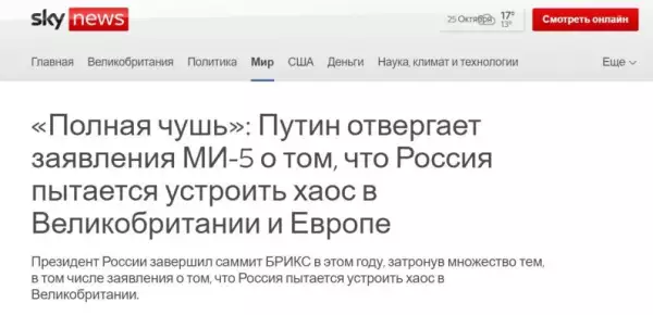 «Президент России завершил саммит БРИКС в этом году, затронув множество тем, в том числе заявления о том, что Россия пытается устроить хаос в Великобритании», — отмечает британская Sky News.
