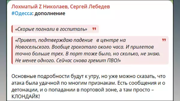 В свою, очередь его родные николаевцы сообщали, что локальный одесский Армагеддон было слышно даже у них. Сам же блогер по косвенным признакам сделал вывод, что русская атака была удачной.