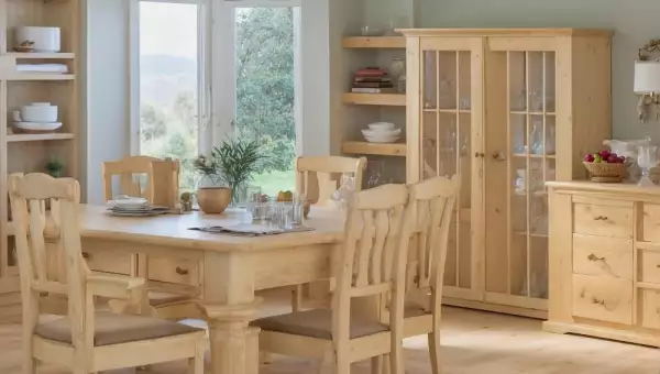 • Древесина сосны известна своим светлым цветом с выраженным рисунком волокон. Она относительно мягкая по сравнению с твердыми породами дерева, такими как дуб или клен, но все же достаточно прочная для изготовления мебели при правильной обработке. Легкость сосны облегчает работу с ней во время таких процессов обработки, как резьба и формовка.