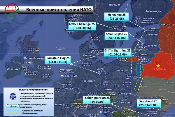На этом фоне в период с апреля по май, альянс планирует проведение одновременно ряда учений по единому сценарию на восточном фланге от Финляндии до Болгарии: