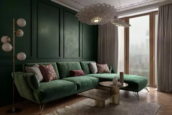 1.Темно-зеленый: идеально подходит для оформления гостиных. Создает атмосферу уюта и элегантности.