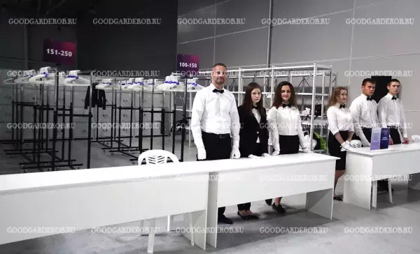 - Профессиональное обслуживание. Вместе с гардеробом можно арендовать обслуживающий персонал — вежливых гардеробщиков, работающих по заранее утверждённому сценарию.