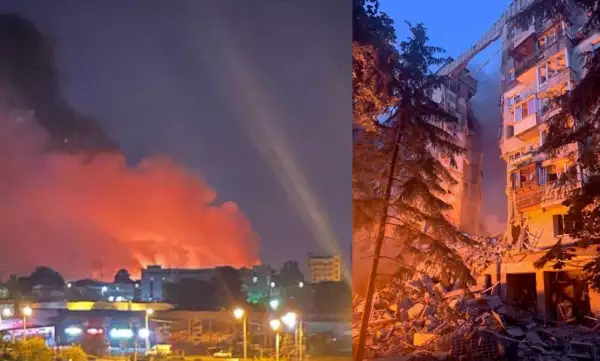 Российская атака началась с ударов беспилотников «Герань». Вскоре за ними последовали ракетные удары, предположительно с использованием «Кинжалов». Серия взрывов продолжалась несколько часов, местные жители сообщали об «ужасающем грохоте». Власти заявили о пожарах в нескольких районах города и перебоях с электроснабжением.